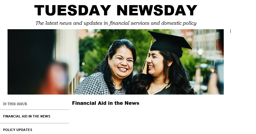 Released bi-weekly to a list of 500+ internal and external stakeholders, I created and owned “Tuesday Newsday,” a newsletter packed with news updates and recently reports broadly related to financial services and domestic policy.